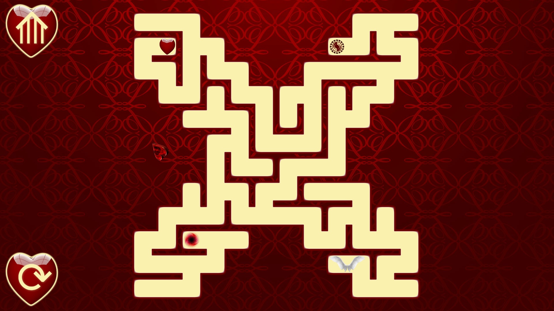 In this game you need to lead a small hearts through the maze. Hearts should be delivered to the portal, but before that activate it, collecting all the pieces of flying heart.