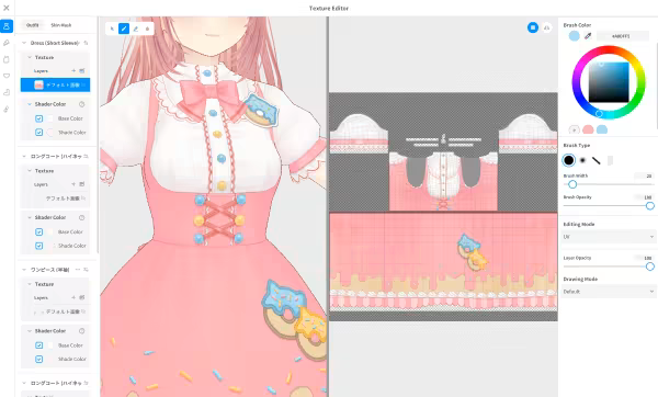 Editing outfits, as well as details in the hair or eyes, has never been easier. Users can check in real-time how their edits are affecting the model directly on the texture, with the 3D preview. (You can draw on both the UV mapped textures and your 3D model directly!) This software supports digital pens and is pressure-sensitive. Furthermore, textures and designs can be arranged in different layers, making it easy for experienced designers to work with.