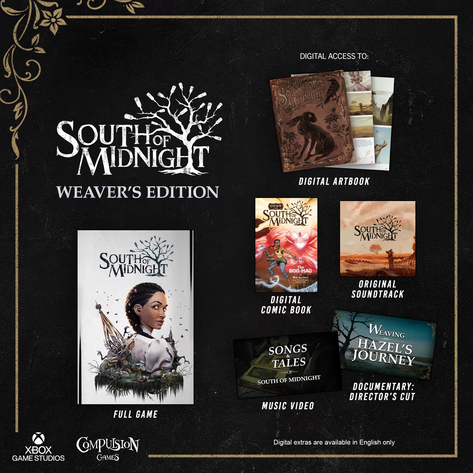 沉浸在《午夜以南》那诡谲而奇幻的世界中吧。Weaver's Edition收录了游戏本体及额外的数字内容(英文版),以此致敬铸就了这段游戏之旅的精湛技艺、动人音乐与传奇故事: