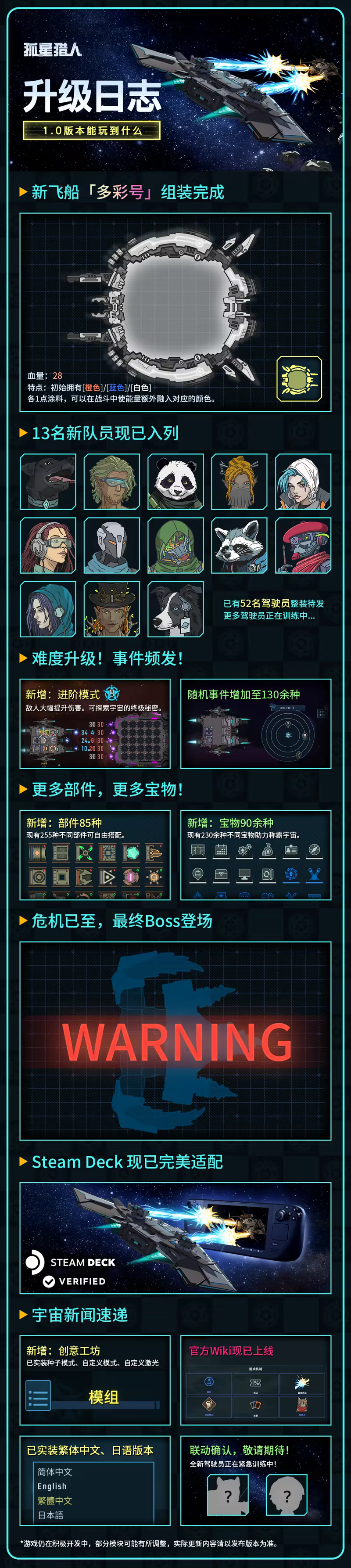 每艘飞船都拥有自身专长,并拥有近百种专属部件!(边上不显眼的小字:协会仅提供初始部件,其余部件需要猎人们在旅途中自行搜寻获取。)