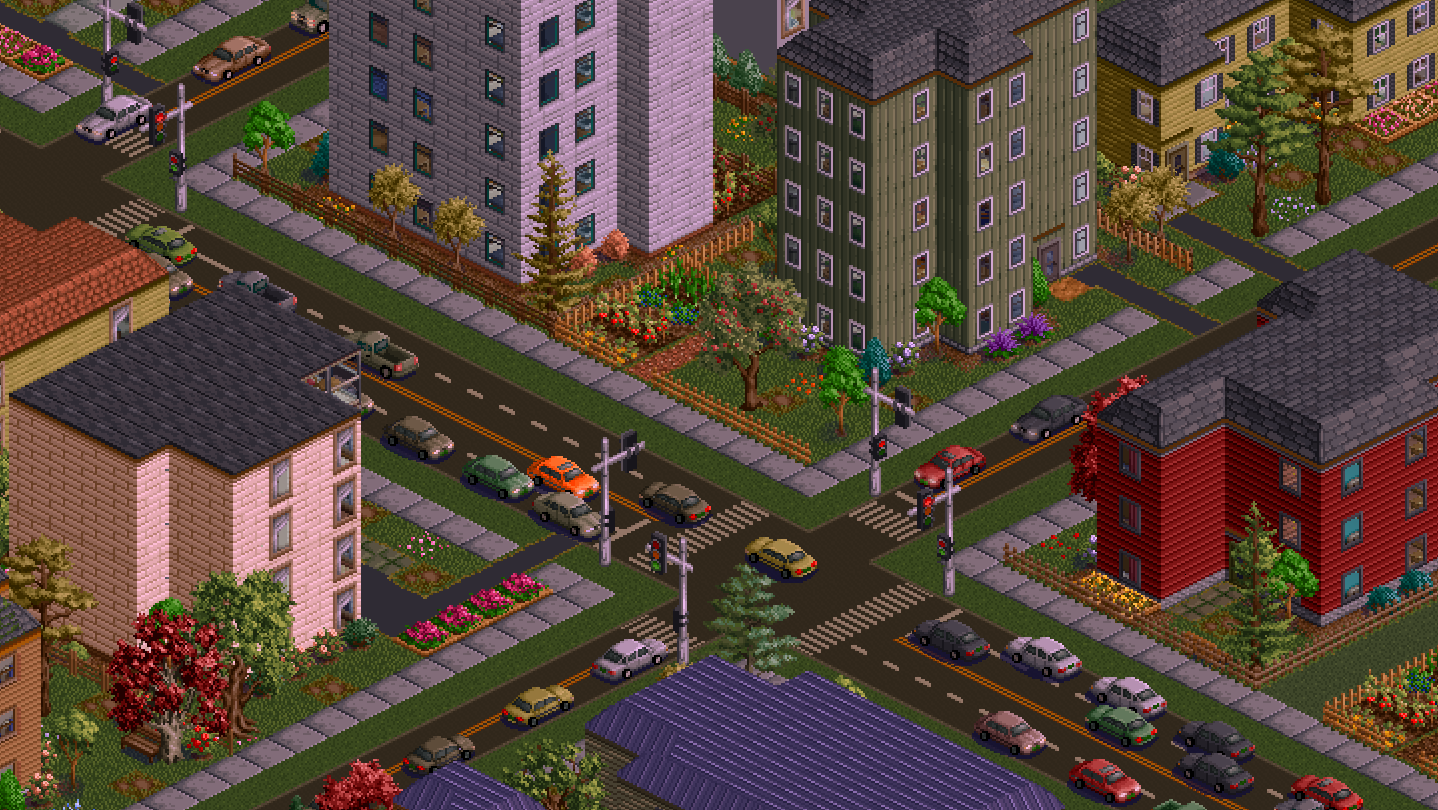 A fresh, modern city builder with charming aesthetics. Detailed agent-based simulation and scheduling. See inside buildings. Design and customize almost anything. Business-specific zoning, and mixed use zones too!