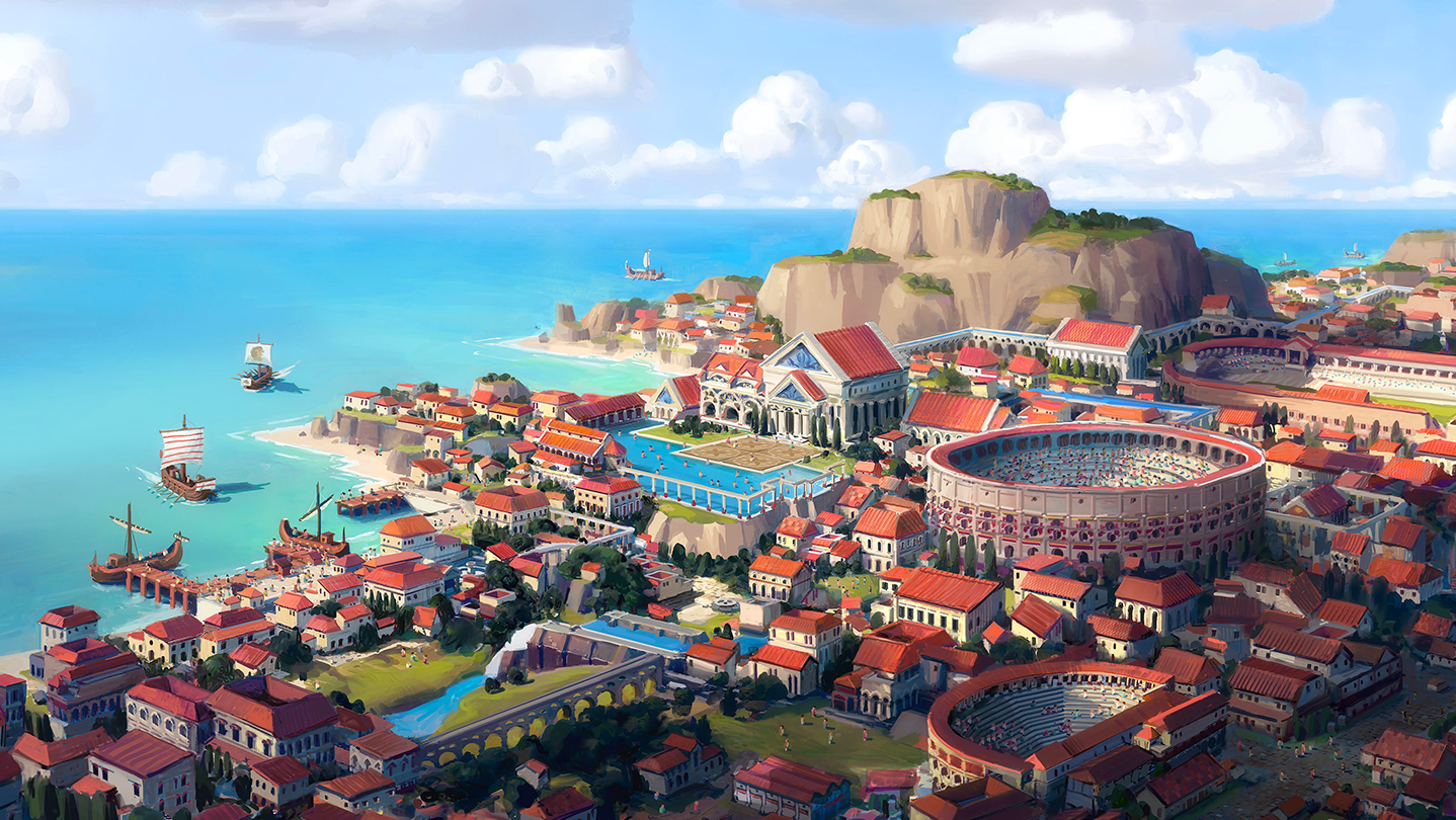 “在《罗马之城》中,你将接受前所未有的挑战,远离风雨飘摇的帝国,兴建自己全新的罗马城市。你不仅要生存下去,还要让城市欣欣向荣,让人民和神明都感到心满意足。”