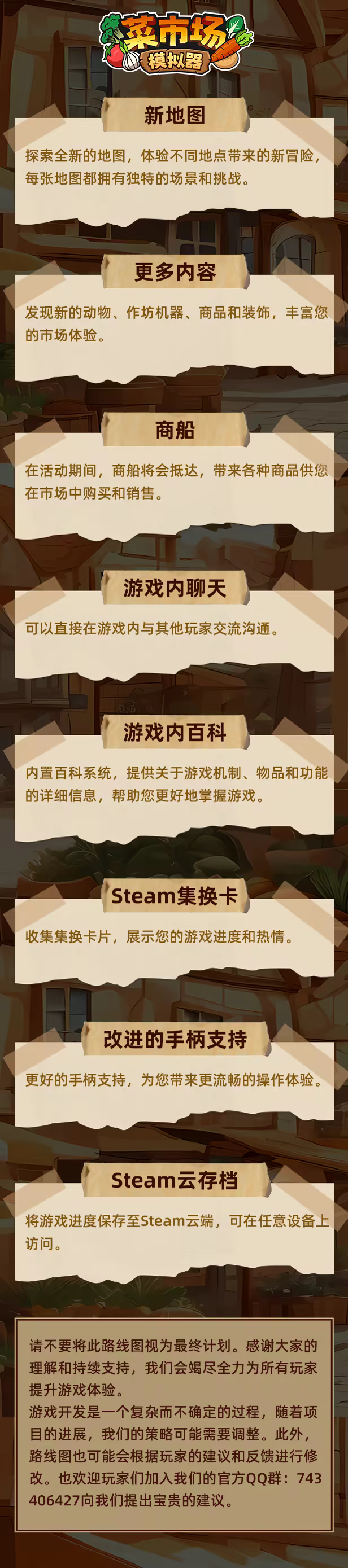 准备好迎接一场热闹的菜市场大冒险了吗?叫上你的小伙伴,一起经营属于你们的菜市场小店!别忘了在讨论区分享你们的经营心得,或者加入我们的QQ群775751391,和全球玩家一起吐槽、一起玩!你的每一个建议,都会让游戏变得更有趣!
