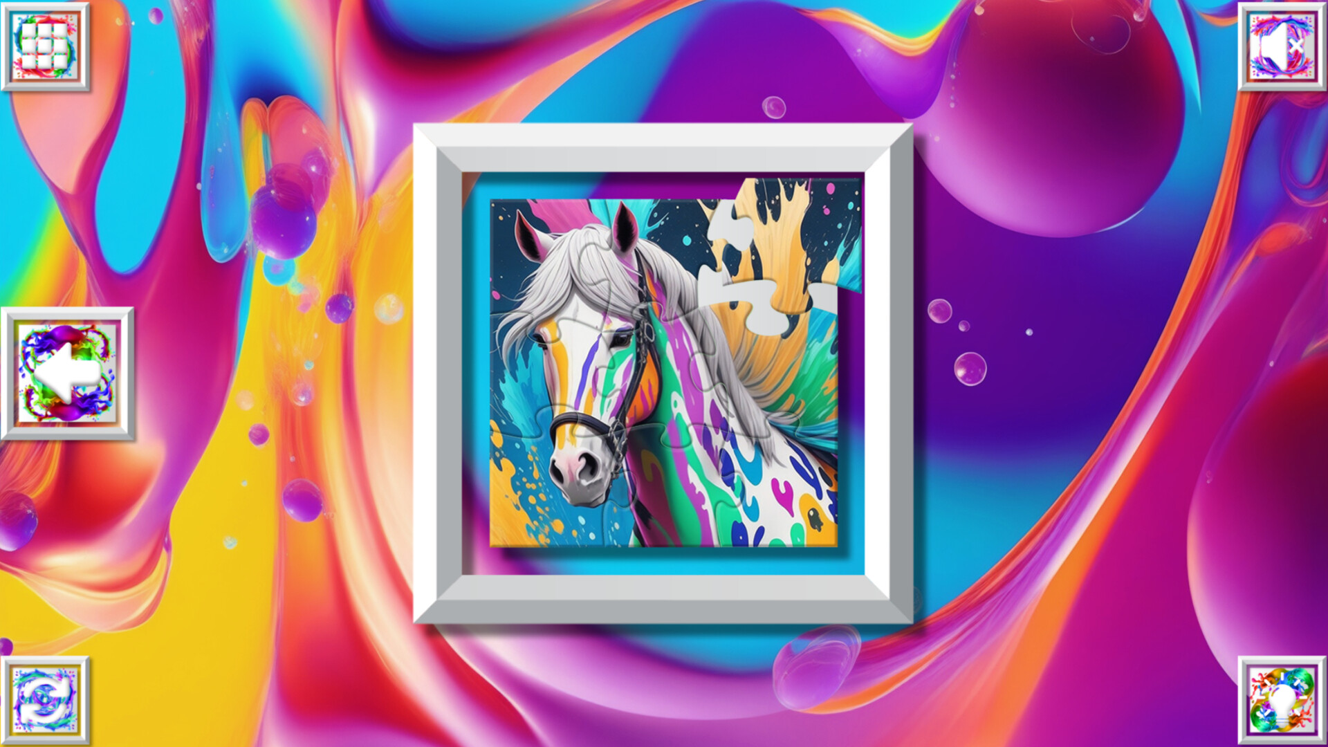 Color Splash: Horses is a charming and relaxing puzzle game that will lift your spirits and take You into the world of cool horses and art. Venture into the gallery, where you will find many extraordinary and colorful horses paintings.