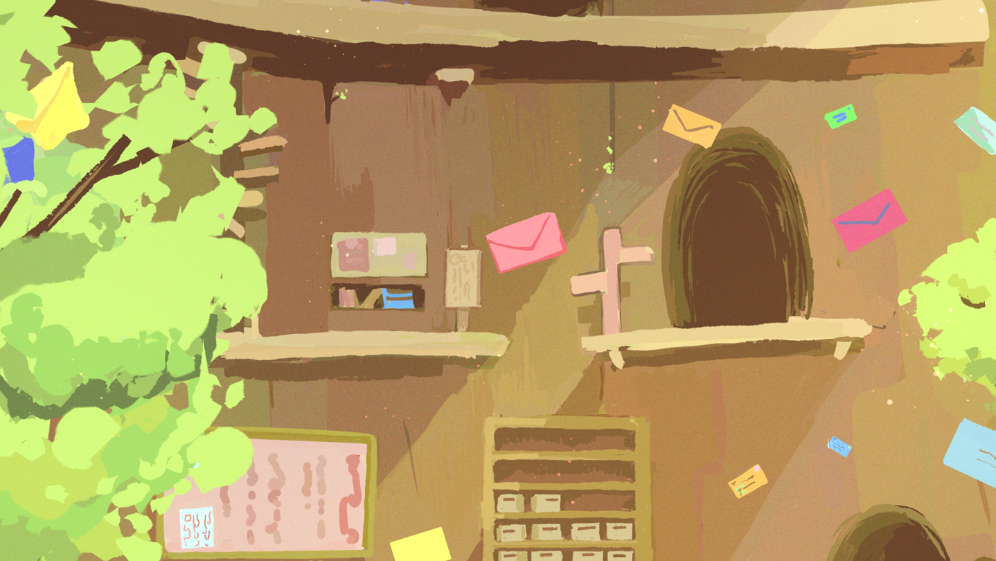 见习信使小雨为了帮助米拉寻找一封迟迟未送达的“最后寄语”,破例带她进入邮局深处。两人沿着巨树不断向上探索,利用邮票寻找线索。随着她们的深入,一段关于爱与告别的故事也逐渐展开。