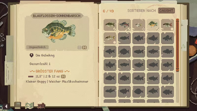 Vervollständige deine Sammlung aus 50+ gewöhnlichen, seltenen und legendären Fischarten, inklusive Süß- und Salzwasserfischen.