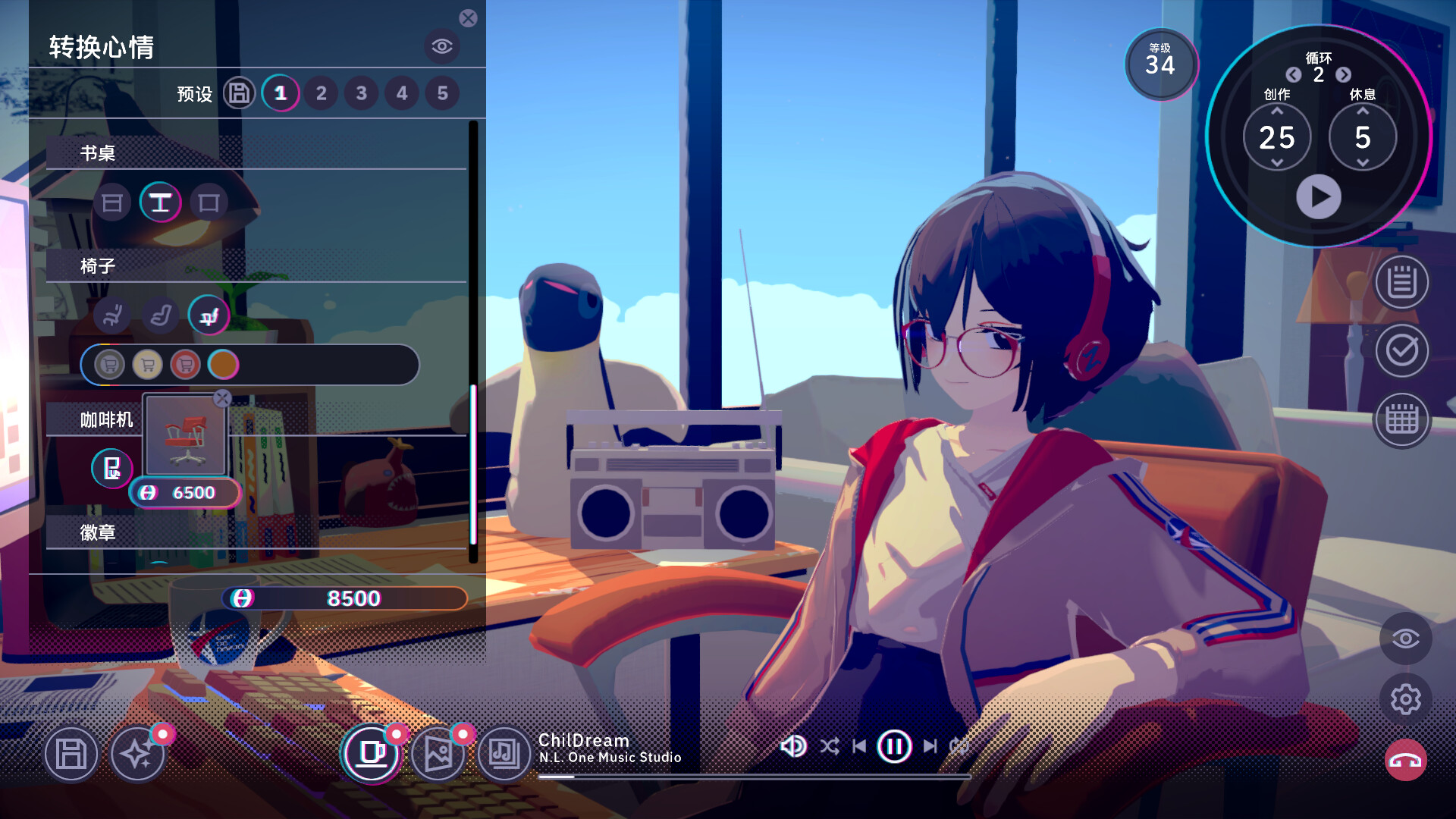 **《放松时光:与你共享Lo-Fi故事》**是一款帮助你专注于工作的有声小说游戏,让你与喜爱写小说、充满幻想的少女——聪音(Satone)一起在书桌前工作。去自由定义那些展现聪音情感的Lofi音乐、环境音和风景吧,能帮助自己更专注于工作!随着你投入更多时间与她共度,彼此的信任关系将逐渐加深,或许你们的心灵也能真正相通……?