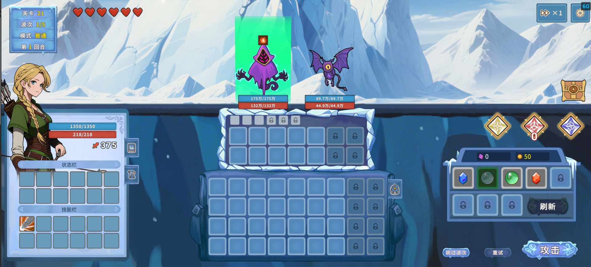 Bietet klassischen rundenbasierten Kampf, der bei jedem Zug bedachtes Planen erlaubt. Keine Strafen bei Niederlagen; passe Edelsteinkombinationen jederzeit an und optimiere deine Taktik wiederholt, bis du den perfekten Build erschaffen hast.