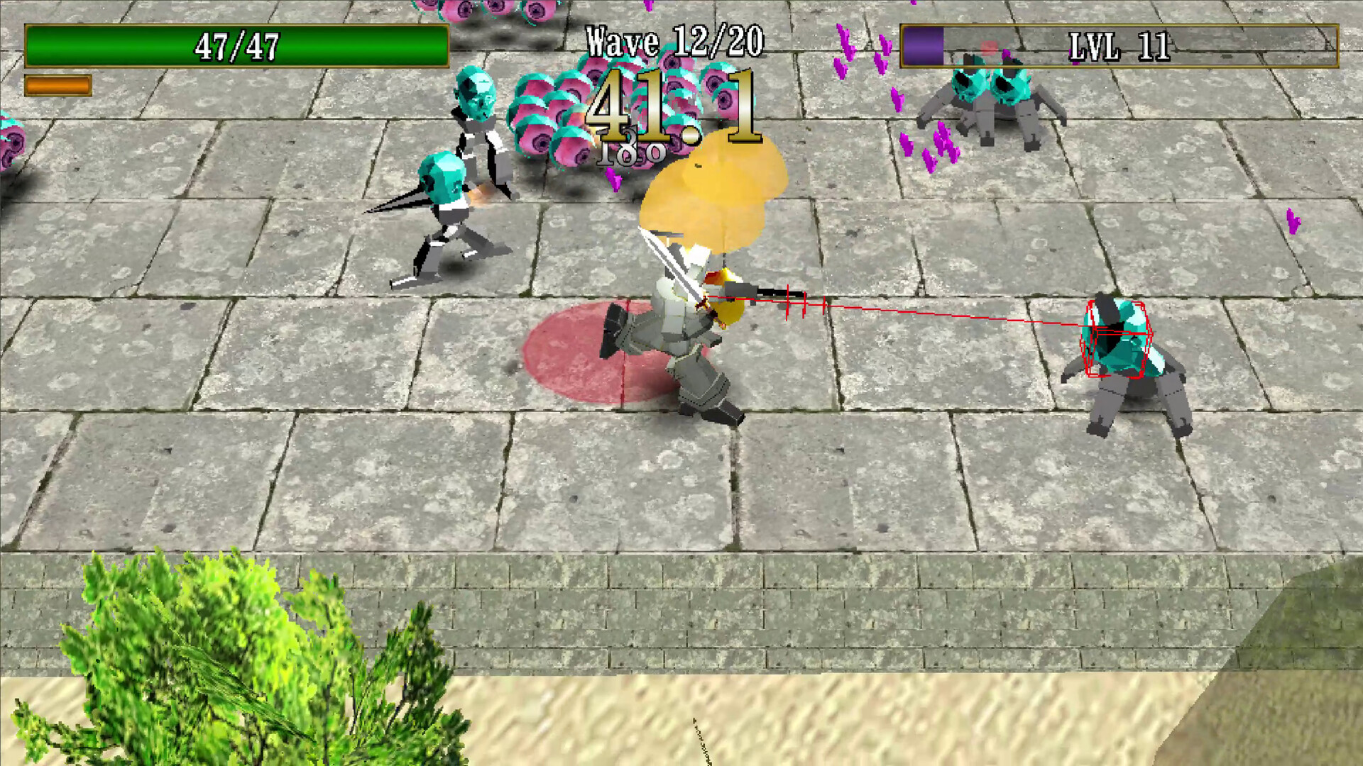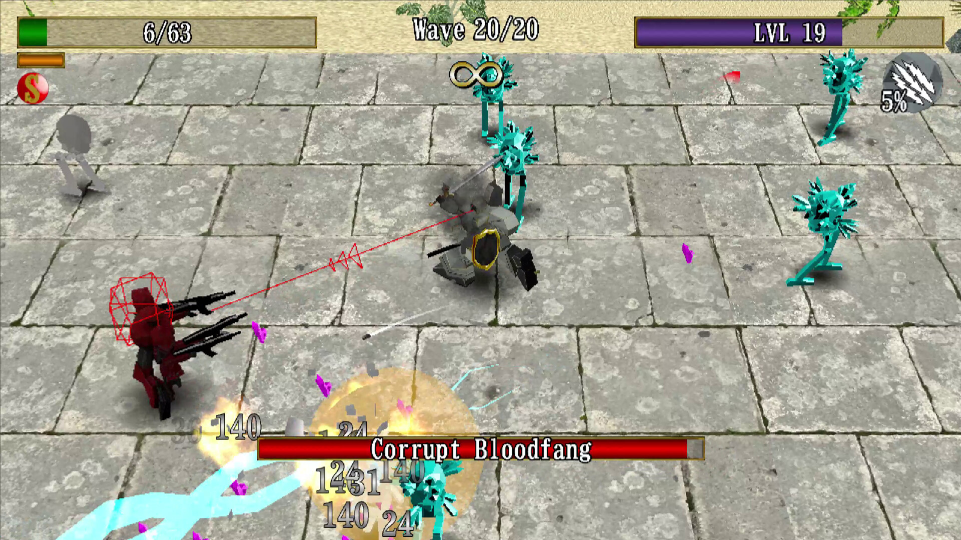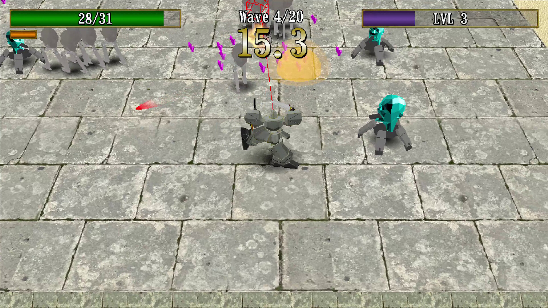 • Level up as you progress through waves